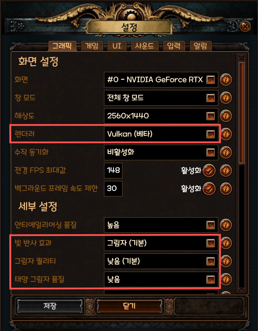 가장 먼저 렌더러를 Vulkan (베타)로 바꿔주자. 조금 사양을 타지만 기존보다 훨씬 나은 환경을 구축해 준다.