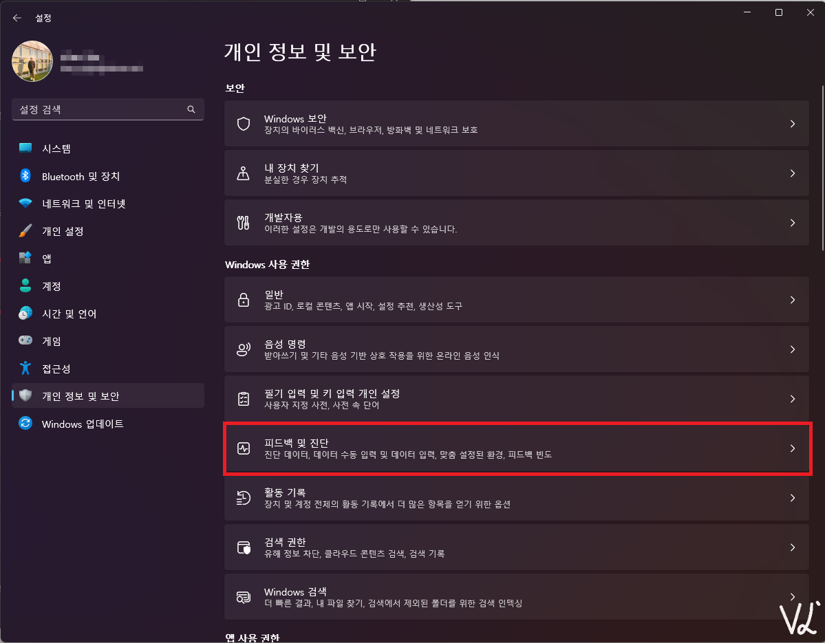 다시 뒤로 넘어와서 (개인 정보 및 보안)