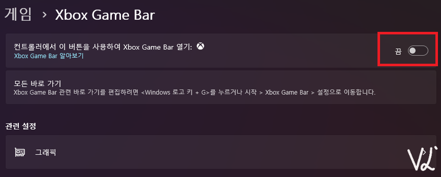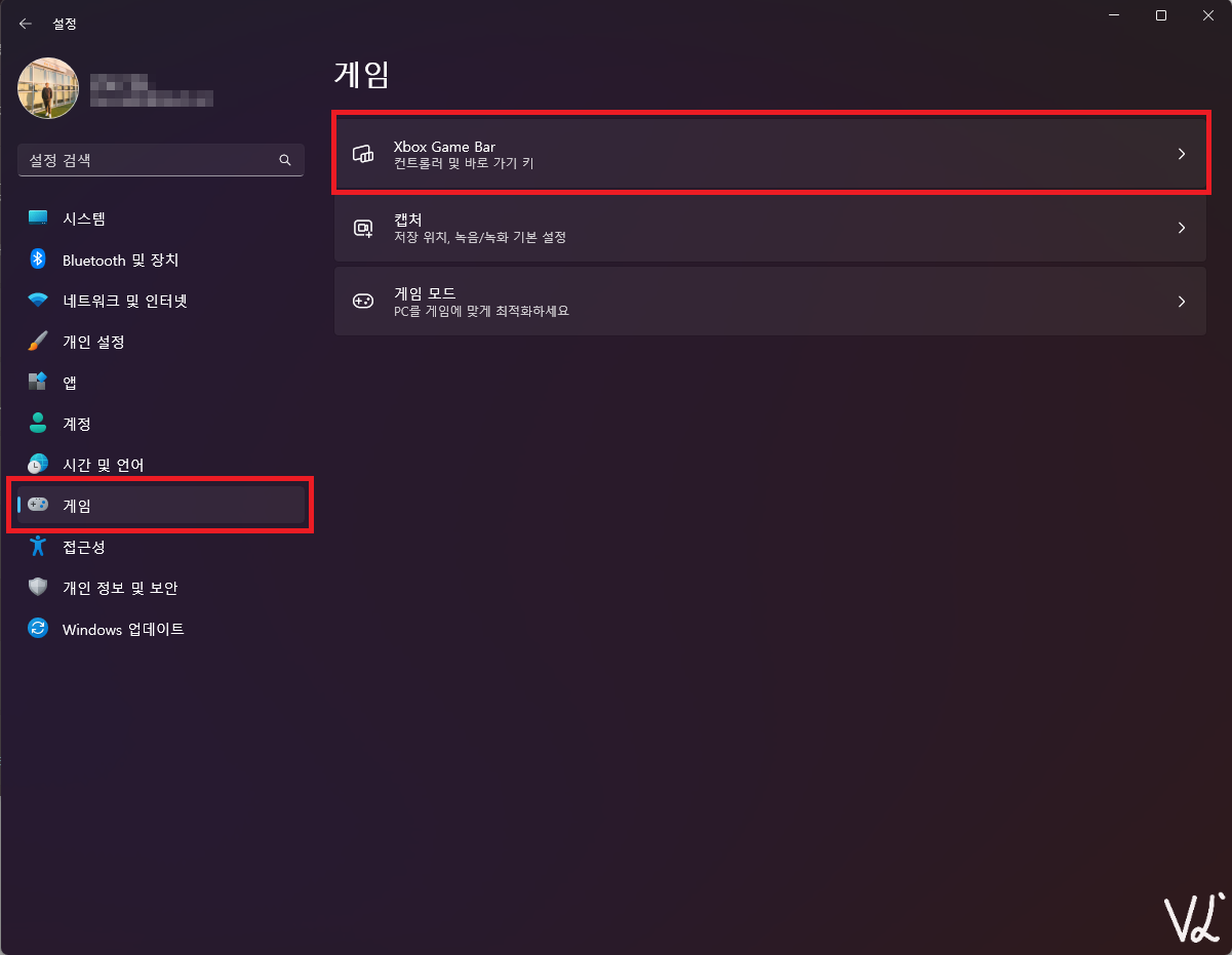 다시 설정 - 게임으로 넘어와 Xbox Game Bar 클릭