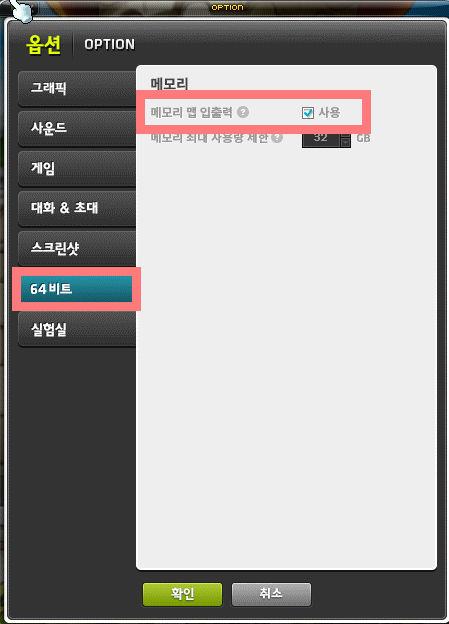메모리 입출력 사용을 반드시 체크해 주자.