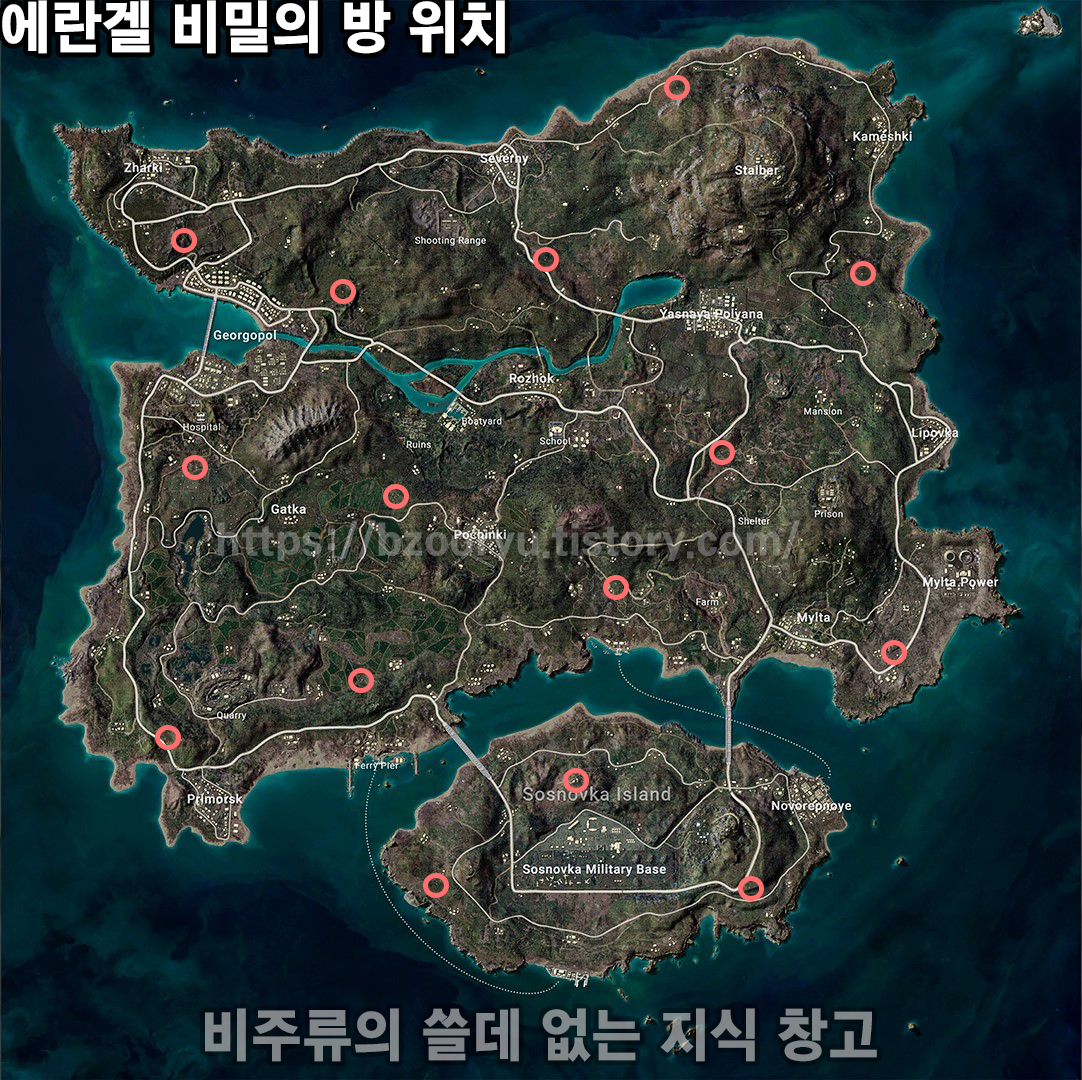 배그 26.1 업데이트를 통해 에란겔 맵 변경으로 테이고처럼 에란겔도 비밀의 방이 생겼다.