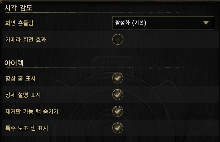 다음은 시각 감도/아이템이다.