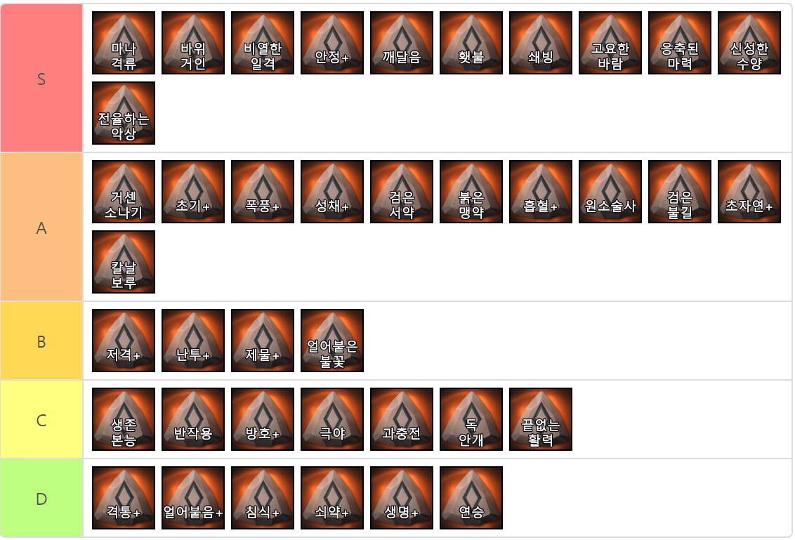 사실상 티어표에서 제외해도 무방한 수준. 에픽 룬을 쓰는 것이 더 나을 수 있습니다.
