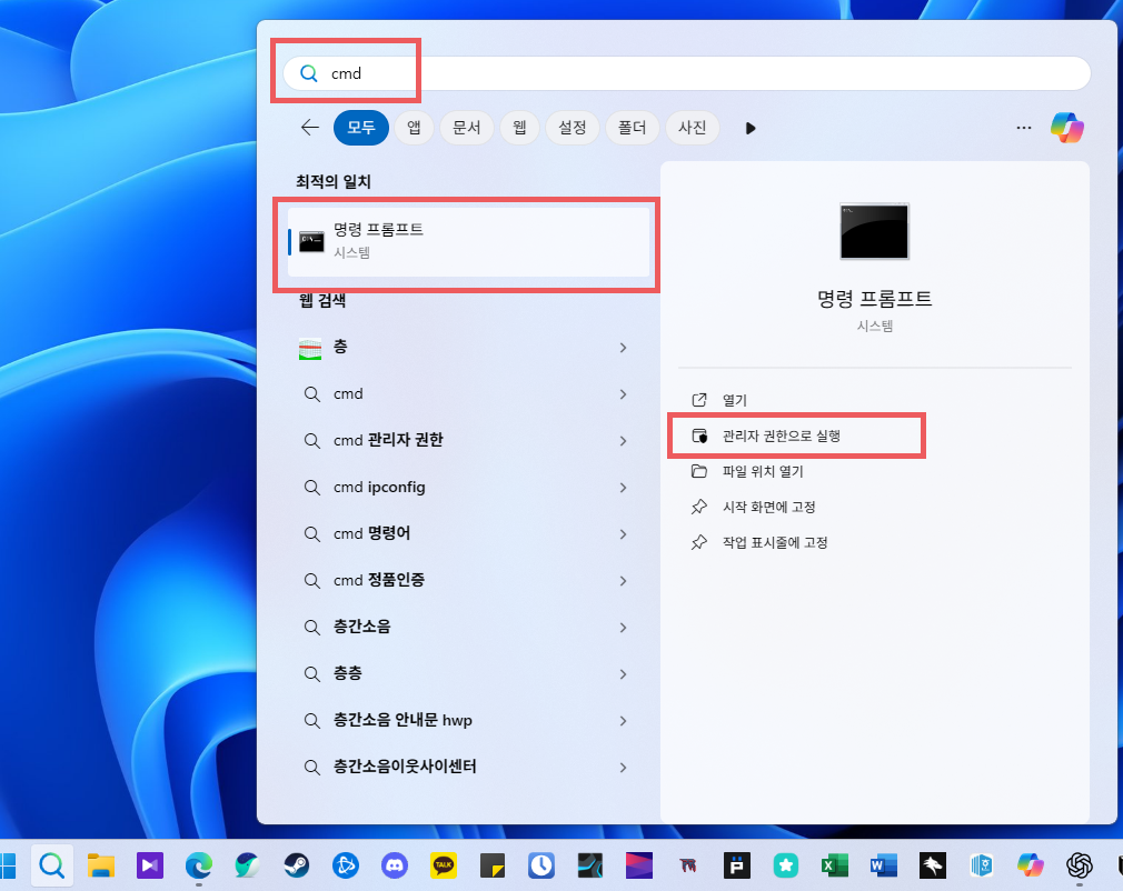 1. cmd 관리자 권한 실행